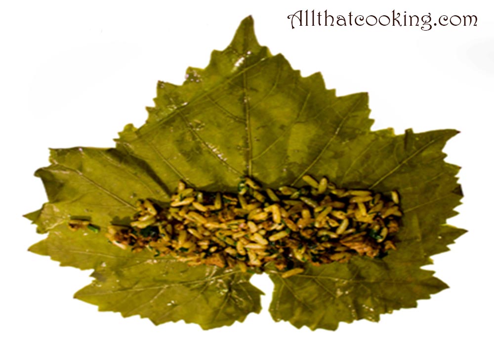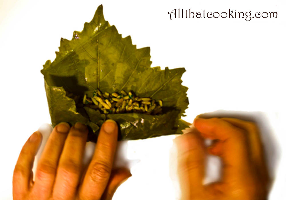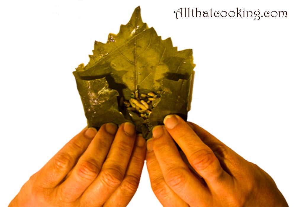 This is easy and fun. Just handle the grape leaves very gently. They will tear easily.