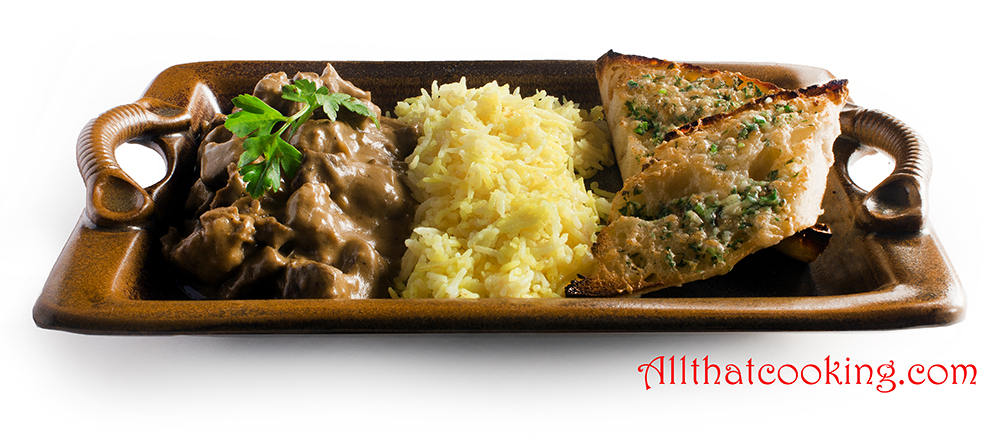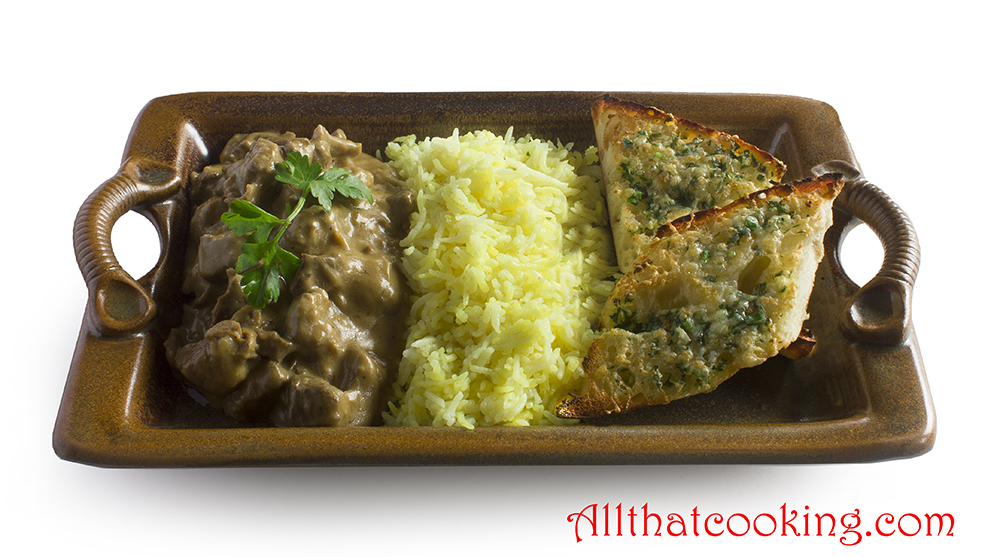 Serve with rice and garlic bread.