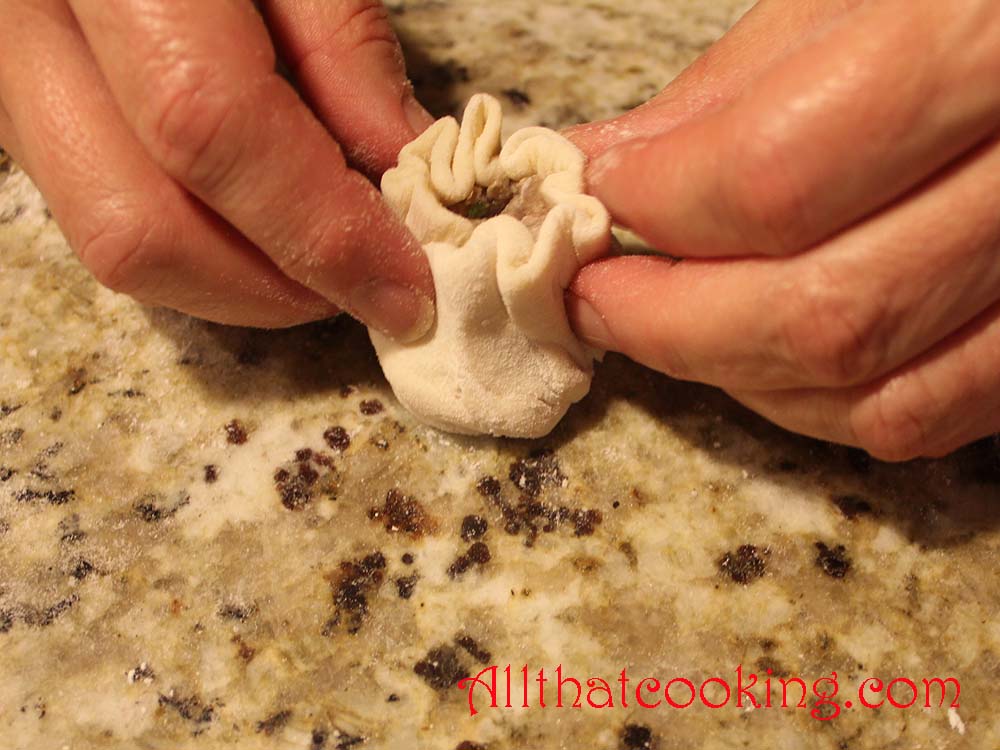 Fair warning:  They are addictive.  And oh!. . . making the pretty, pleated packages is NOT as easy as it looks!  We watched tons of how-to videos, pleated along with the cooks, experimented and tried to devise our own step by step pleating method. The result was many buuz that looked totally NOT like buuz!  In doing so, we talked about cooking, experimenting, trying new recipes, new methods and sharing kitchen time with friends.  It doesn’t get better than this.  So without further ado and with humble apologies to the Mongolian cooks who are true artists that create beautiful little packages for this savory filling we invite you to try your hand at buzz.