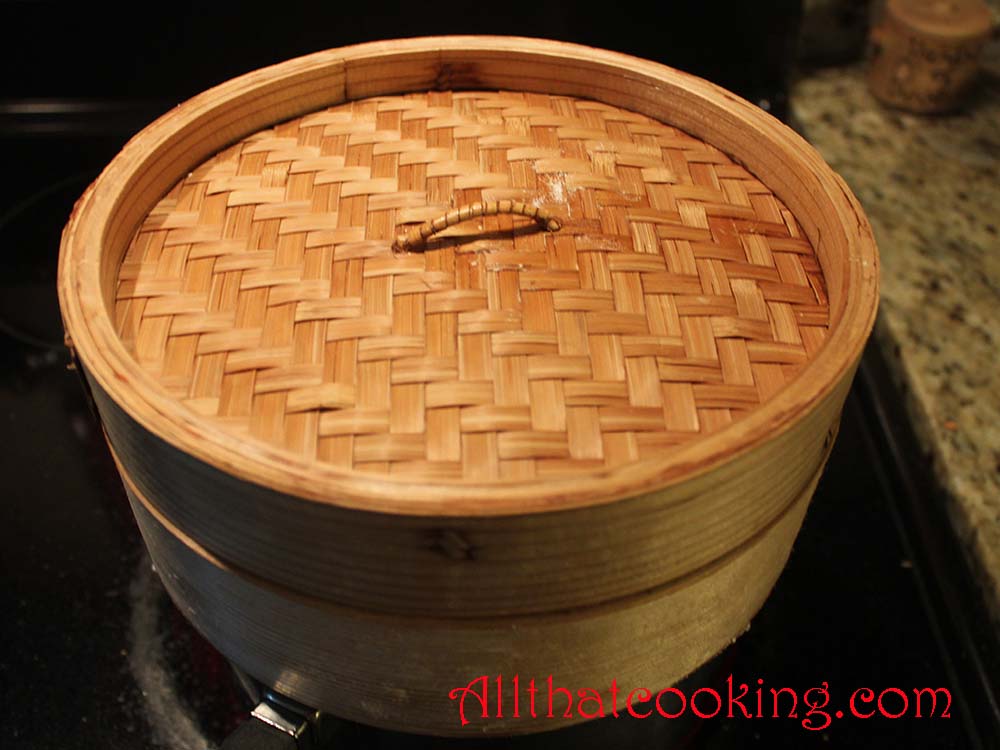 We used a bamboo steamer.  If you don’t have one, a flat pasta strainer or even a cake rack would work just as well.
