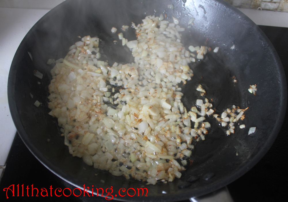 3. Add remaining oil to skillet, reduce heat to medium high. Toss in onions and cook until lightly colored and translucent.