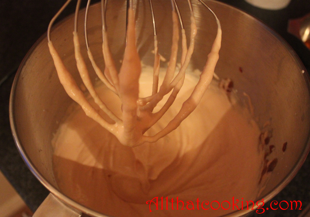 4.  Pour chili sauce and whipping cream into bowl of stand mixer.  Whip until thickened and soft peaks form.  Alternately you can use hand mixer.