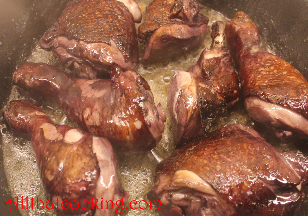 9. Cook chicken uncovered over medium high heat for about 10 minutes or until chicken is cooked and the meats falls off the bones.