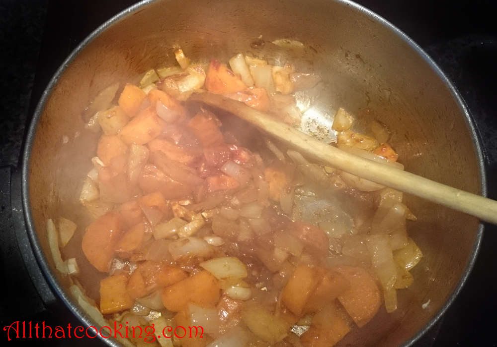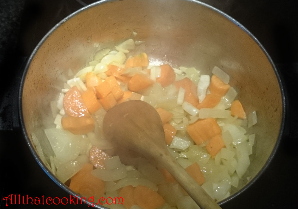 1. In a large soup pot, heat olive oil over medium high heat until glistening. Throw in onion and carrots. Cook, stirring constantly until onion is translucent. Stir in tomato paste and cook for a minute or two while constantly stirring. Cooking the mixture eliminates the tomato acidity and brings out the rich tomato flavor.