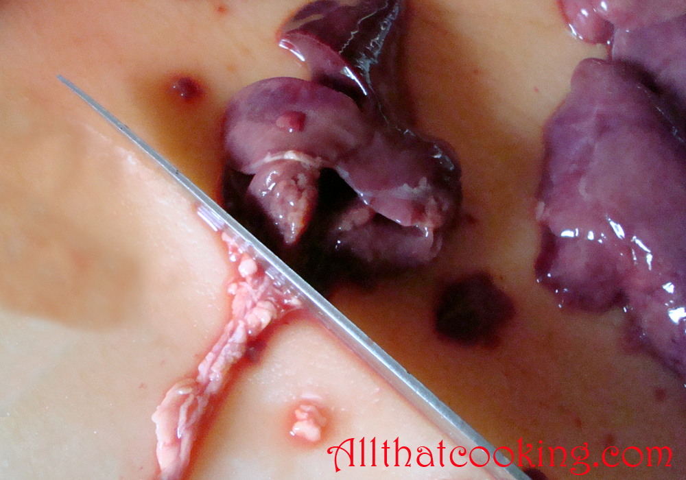 1.  Trim fat and connective tissue from livers then rinse in cold water.