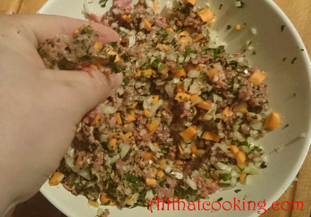 1.   Mix meat, parsley, onion, carrot, salt and pepper together in a large bowl.