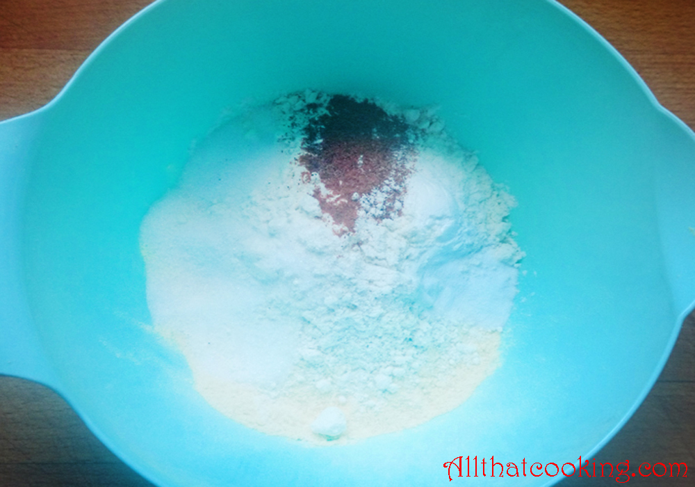 1.  Combine cornmeal, flour, sugar, salt,baking powder, baking soda and cayenne in a large bowl.  Mix well.
