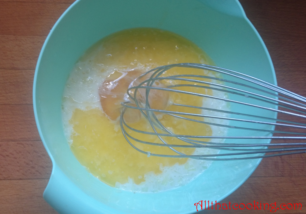 2.   In another bowl whisk together egg, buttermilk, butter and onion.
