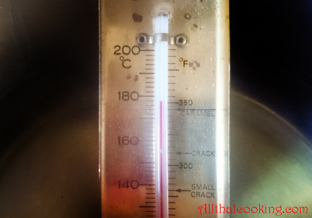 5.  Clip a candy/oil thermometer to the side of the pot.  Heat oil to 350F.