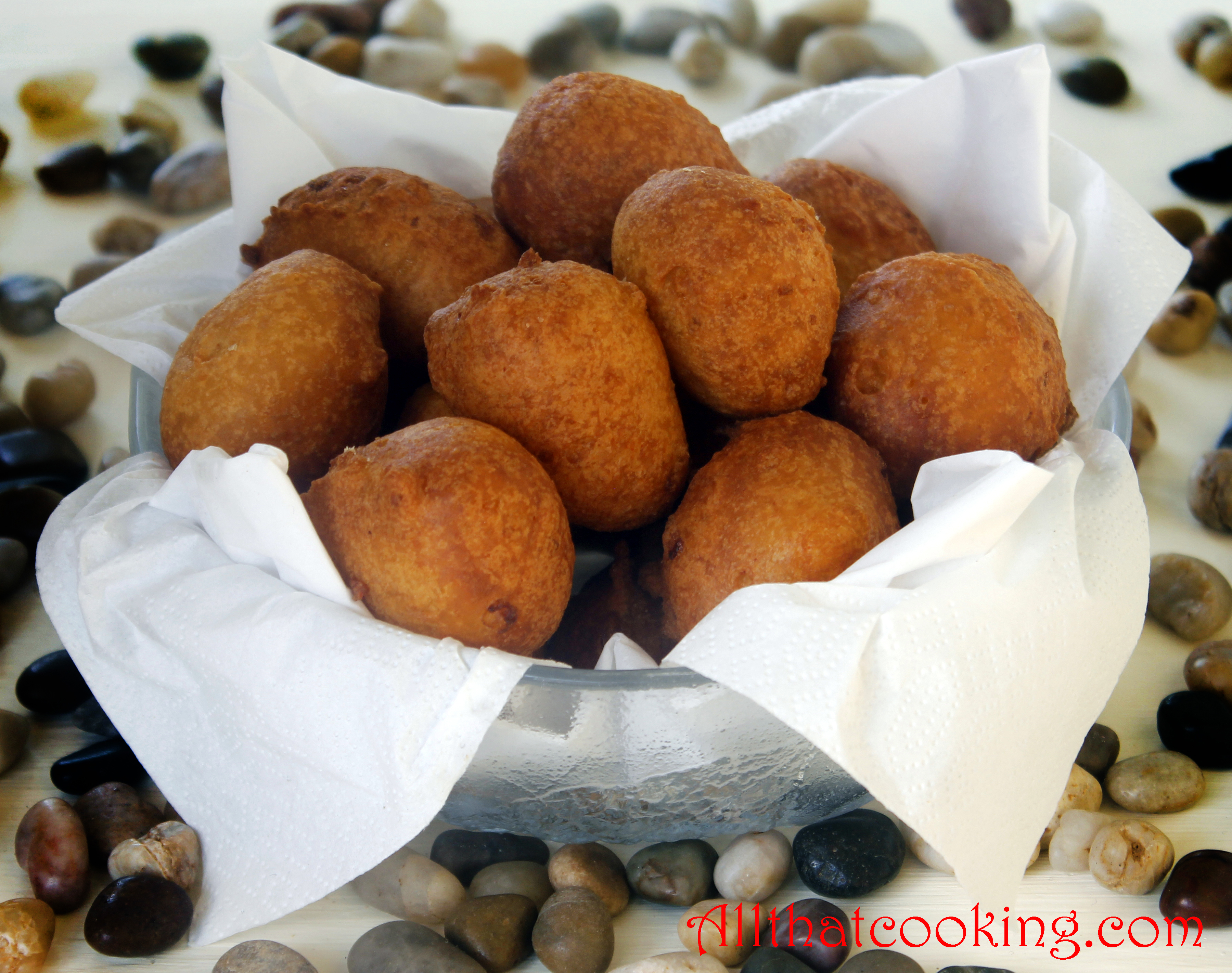 Although a shrimp boil is at the top of his best-loved Southern food list, the other day it was hush puppies that were calling Oli’s name.  It isn’t a Southern barbecue or fish fry without these little golden orbs of fried cornmeal batter with a crunchy outside and a moist, heavenly corn bread interior.  They’re on the menu at seafood restaurants everywhere around here.   Hands down we think the best hush puppies are served at a seafood restaurant down on the Chesapeake Bay.  But this poor guy is in Sweden and is craving a taste of the South.  So he simply went into his kitchen, made his own and to his delight, glorious hush puppies were born in Gothenburg, Sweden.