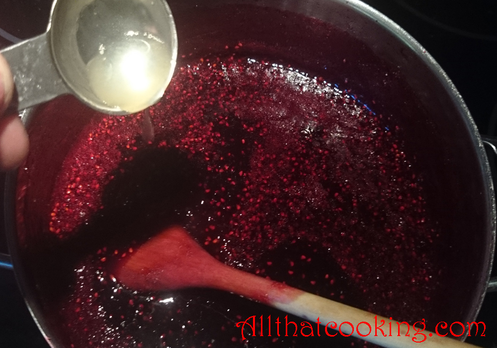 4. Pour in lemon juice and mix well. Let jam come to room temperature in the pot.