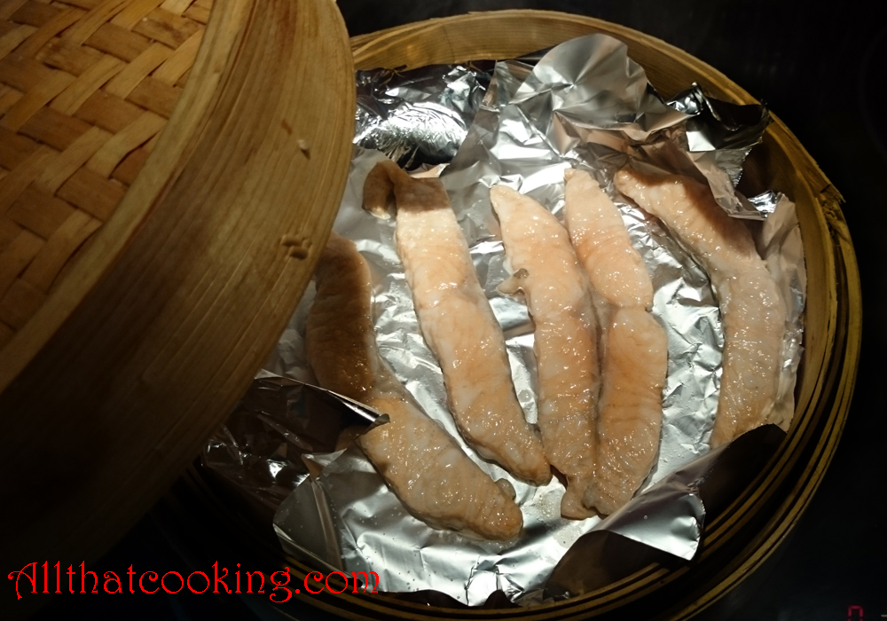- Remove salmon from steamer and drain well on paper towels and reserve.
