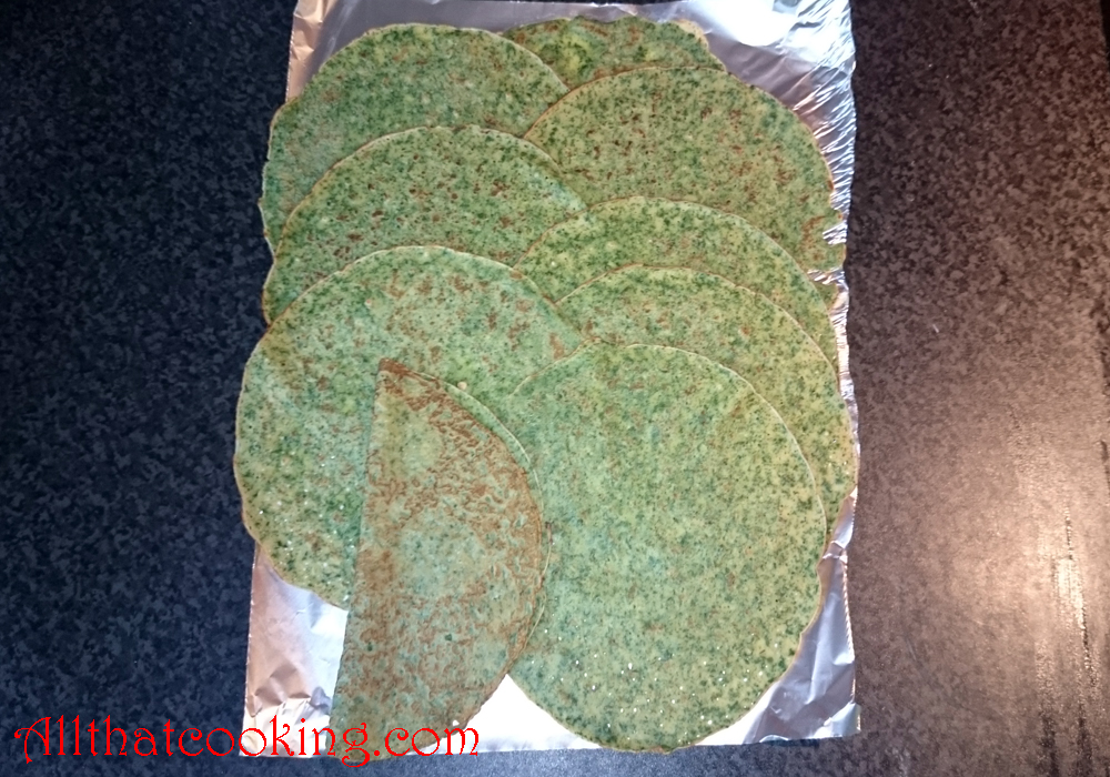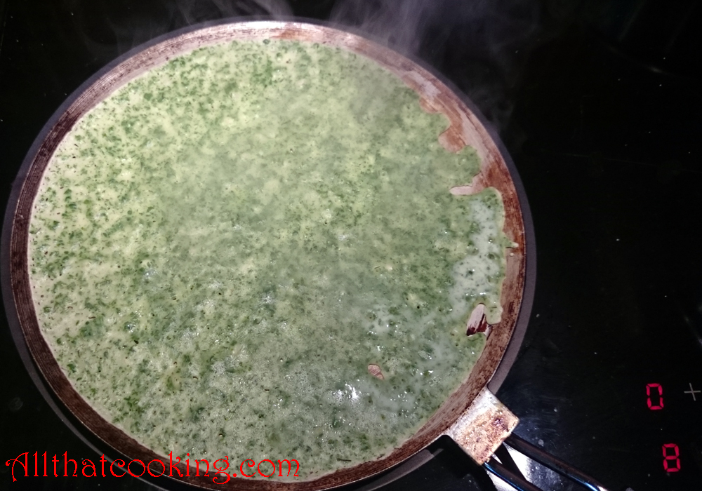 10. Return skillet to heat and cook pancake until surface is dry, about 10-15 seconds. Flip pancake and cook until dry, not more than 10 seconds. The 1st side will be brownish and you want to keep the second side nice and green. That’s why you don’t cook it as long.
