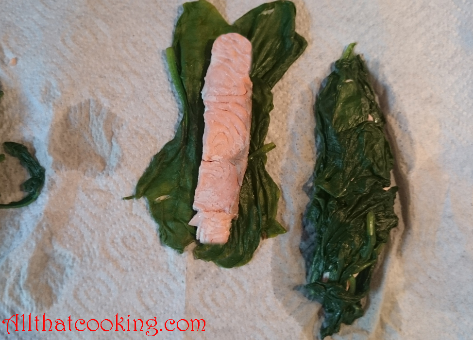 7. Take the reserved spinach leaves and blot dry with paper towels if necessary.
