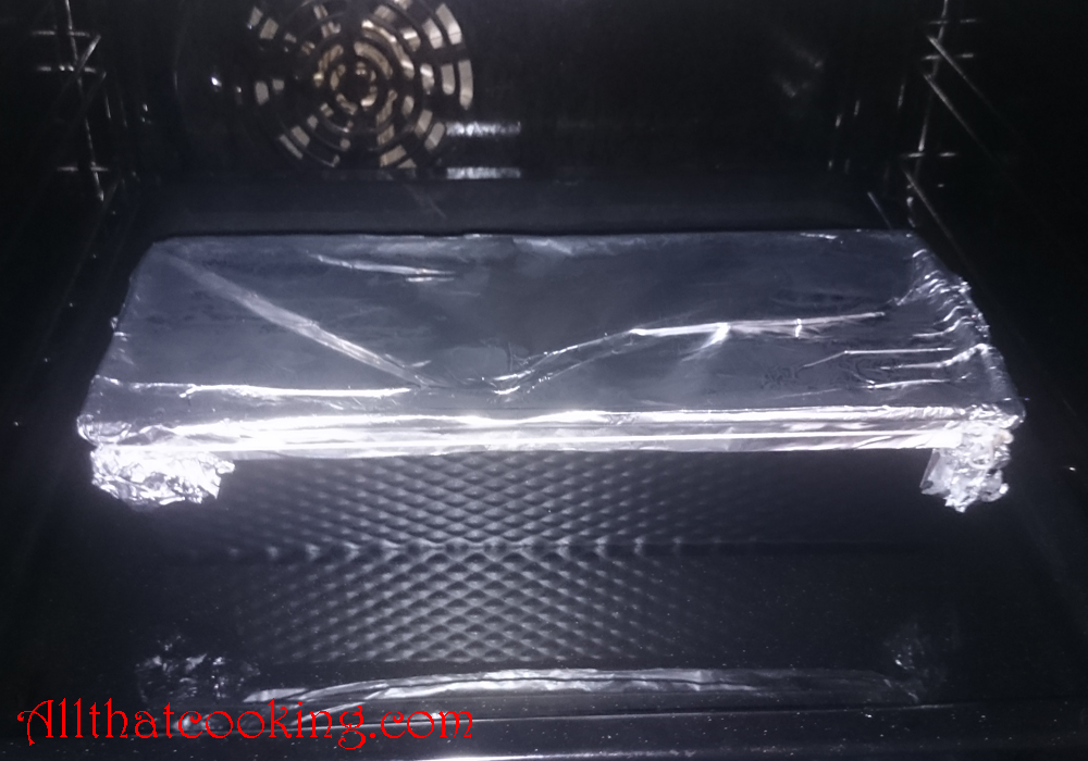 10. Tightly cover the top with aluminum foil and use kitchen string to secure it. You don’t want any water coming into the pan during the cooking process.