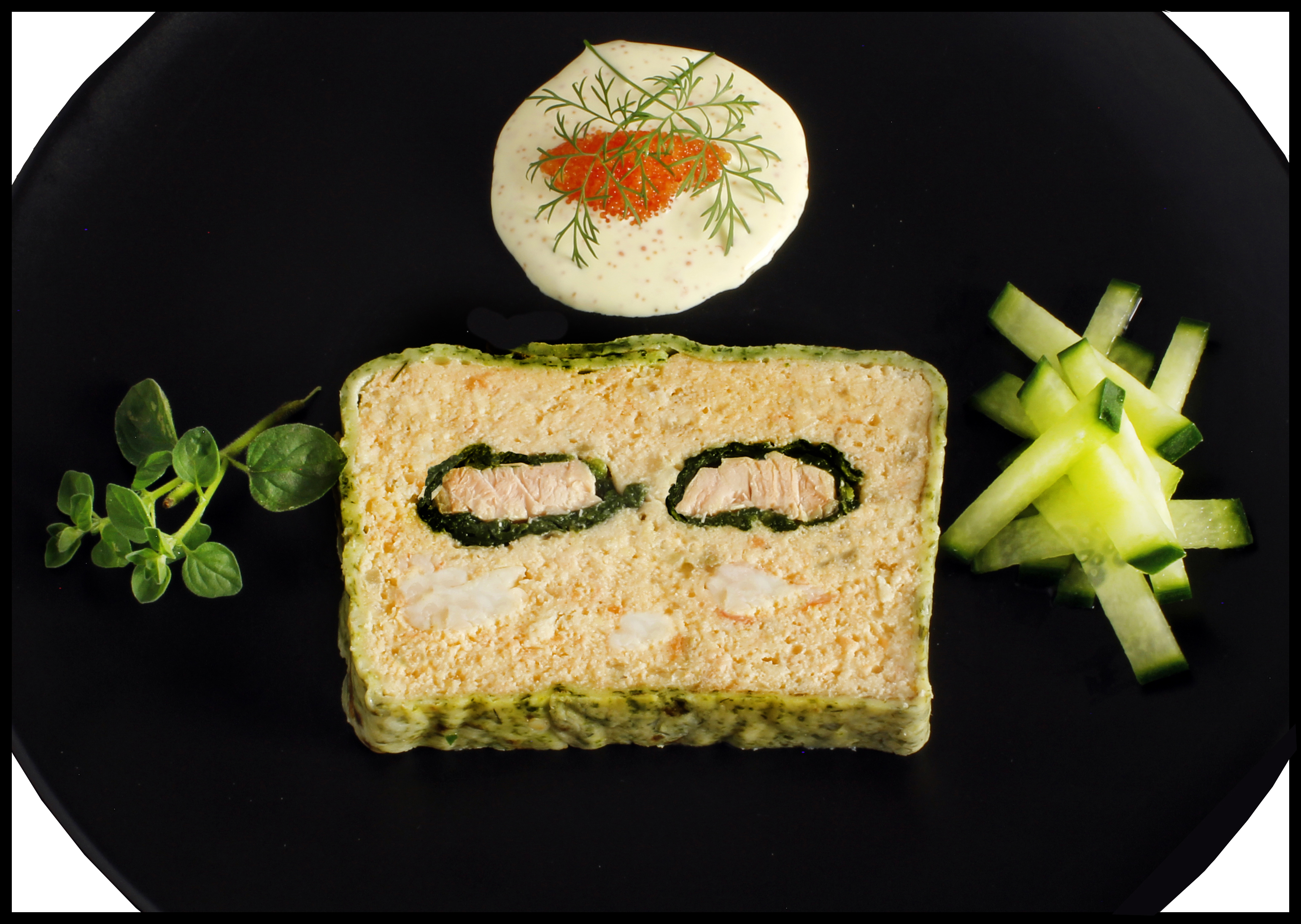 From that smörgåsbord, we are sharing Oli’s recipe for an elegant salmon pâté wrapped in delicate spinach crepe-like pancakes. This is not a difficult or complicated recipe, just one that has a few steps to follow. The result is a smooth textured salmon and whitefish pâté with a surprise bite of shrimp. And oh, there are two rolls of spinach wrapped salmon tunneling through the middle. Served sliced with a simple cold roe sauce of sour cream, mayo and a splash of white wine on the side, you have a dish that is easily the star of any buffet any time of year.