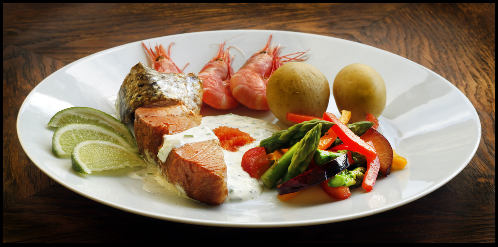 This being said, here’s a meal that is an easy and elegant way to showcase your newly gained smoking expertise. Warm smoked salmon, a no-cook herb sauce, some steamed shrimp and potatoes are simple to prepare. A colorful salad of asparagus, yellow and red bell peppers with a lime and olive oil dressing adds just the right amount of crunch and zip to finish the plate. This is a meal that you make on one of those nights when you want to relax but also want something special on the table, so check out our post on how to warm smoke salmon and get smoking.