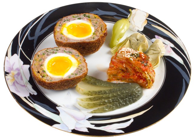 Looking for a great breakfast or lunch dish?  Look no further.  Scotch eggs will fit the bill quite nicely.  These popular British pub snacks are a hard or soft boiled egg wrapped in sausage meat.  Roll these babies in breadcrumbs and then drop them into a fryer – irresistible!