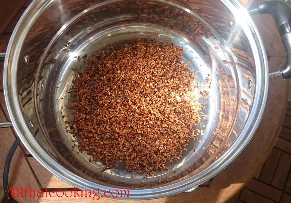 - Set stove burner to high. Spread wood chips evenly over bottom of smoker and place on burner when it has reached max heat intensity.