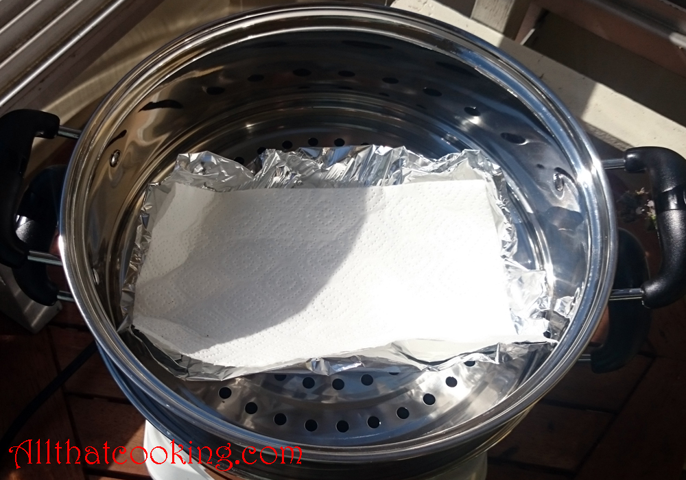 - In a few minutes the first thing you will see is an odorless gray steam. When it turns to a strong, brownish smoke it’s ready. The next piece to go into Oli’s smoker is the pot with the steamer bottom. To protect the fillet from direct heat and to absorb moisture from the fillet, he placed aluminum foil on the steamer then put a paper towel on top of it. Leave some holes from the steamer bottom uncovered.
