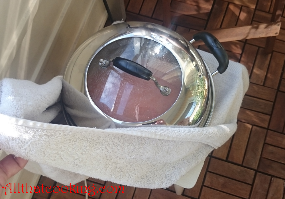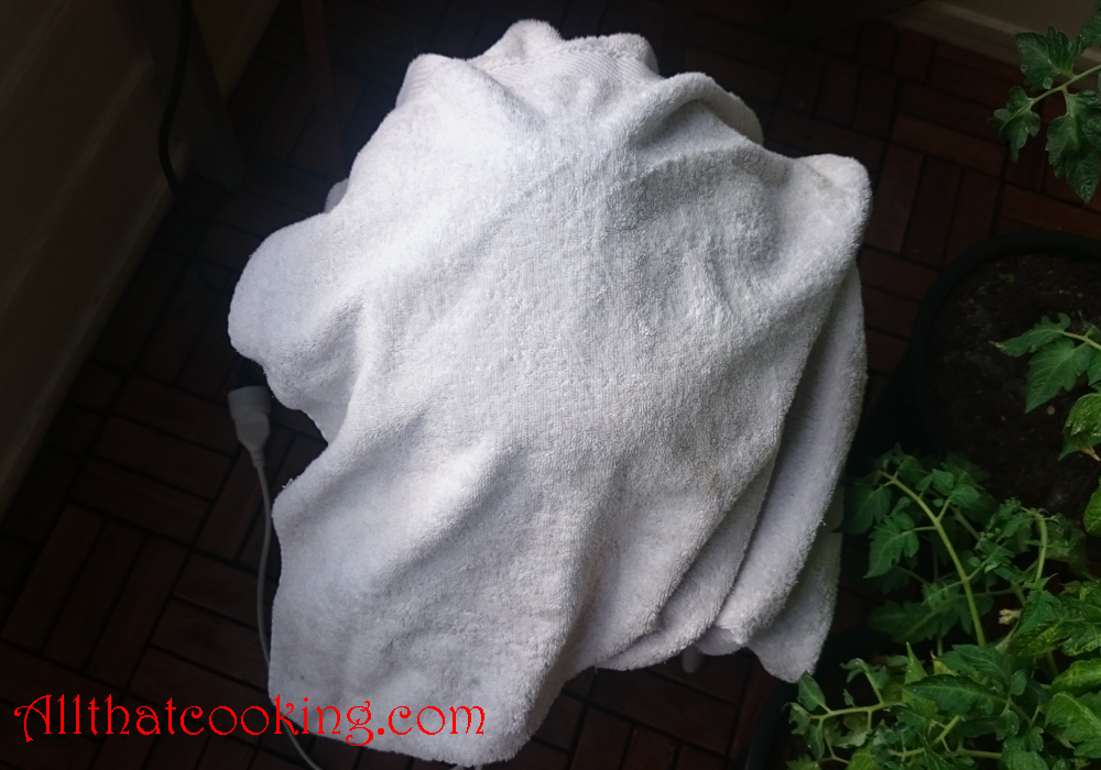 - Remove the upper part of the smoker from the base parts and wrap it in a towel for 4-5 minutes. This will increase the smokey flavor and keep the fish from getting too warm. You can skip the towel wrap if you don’t want a very smokey salmon.
